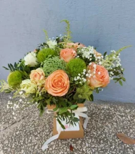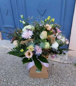 → Composé de fleurs pastel et de feuillages discrets, ce bouquet diffuse une atmosphère de fraîcheur et de douceur.